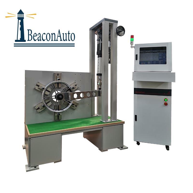 電動(dòng)車車輪徑向沖擊試驗(yàn)機(jī) 電動(dòng)車車輪徑向沖擊試驗(yàn)機(jī)產(chǎn)品簡(jiǎn)介: 用于模擬車輛行駛過(guò)程中經(jīng)過(guò)溝坑等起伏路面時(shí)輪轂受到的沖擊力,該試驗(yàn)機(jī)沖擊能量可調(diào)(通過(guò)調(diào)整砝碼配重和沖擊高度實(shí)現(xiàn)),系統(tǒng)配置調(diào)整高度的絲杠和伺服電機(jī)控制高度的變化,高精度編碼器實(shí)時(shí)顯示沖擊高度,(實(shí)驗(yàn)前輸入輪轂直徑和沖擊高度后,系統(tǒng)自動(dòng)調(diào)整到預(yù)設(shè)位置,)專用電磁脫扣機(jī)構(gòu),穩(wěn)定可靠,系統(tǒng)配置雙重保險(xiǎn)裝置,防止誤操作造成沖擊。(防護(hù)門不關(guān)無(wú)法進(jìn)行試驗(yàn),不解除保險(xiǎn)銷無(wú)法進(jìn)行試驗(yàn))。 電動(dòng)車車輪徑向沖擊試驗(yàn)機(jī)執(zhí)行標(biāo)準(zhǔn) 1) QC/T211-1996《摩托車和輕便摩托車輕合金車輪試驗(yàn)方法》 2)QC/T212-1996《摩托車和輕便摩托車輕合金整體車輪試驗(yàn)方法》 3)GB/T6147-92 《試驗(yàn)機(jī)包裝、包裝標(biāo)志、儲(chǔ)運(yùn)技術(shù)要求》 4)JASO T 203-85《摩托車輕合金車輪》 5) ISO8644-2006《摩托車和輕便摩托車輕鋁合金車輪》 6)YGK-4-301(2007)《雅馬哈摩托車用輕合金制車輪技術(shù)規(guī)程》 7)GB/T22435-2008《摩托車和輕便摩托車輕合金車輪》 注:請(qǐng)?zhí)峁┵F方?jīng)_擊試驗(yàn)執(zhí)行的標(biāo)準(zhǔn) 電動(dòng)車車輪徑向沖擊試驗(yàn)機(jī)產(chǎn)品參數(shù): 1. 主沖擊錘質(zhì)量:100kg 2. 次錘質(zhì)量:40kg 3. 沖擊錘頭寬度:300mm 4. 沖擊錘最大位移:不小于400mm 5. 中心高:450mm 6. 最大提升高度:1250(最大輪胎時(shí)) 7. 車輪安裝支架可調(diào):260 mm 8. 柱間距:750mm 寬度 9. 彈簧總剛度:300±10kgf/cm 10. 砝碼規(guī)格: 5kg×40 11. 適合輪轂外徑:φ260~φ800mm(含輪胎) 12. 電機(jī)功率:≤1kw 13. 重量1100kg 14. 尺寸:1300*1000*2100 電動(dòng)車車輪徑向沖擊試驗(yàn)機(jī)產(chǎn)品特點(diǎn): 1、該試驗(yàn)機(jī)主要由主機(jī)、參數(shù)測(cè)量顯示單元、強(qiáng)電控制單元、試驗(yàn)附具等組成。 2、主機(jī)采用雙立柱框架結(jié)構(gòu),電機(jī)上置,通過(guò)伺服電機(jī)帶動(dòng)絲杠旋轉(zhuǎn),從而帶動(dòng)提升裝置上下移動(dòng),內(nèi)置光電編碼器準(zhǔn)確測(cè)量高度值,從而保證沖擊能量準(zhǔn)確、可靠。完善的測(cè)控軟件,設(shè)置輪轂直徑和沖擊能量后,系統(tǒng)自動(dòng)調(diào)整到規(guī)定位置。 提升裝置采用雙絲杠調(diào)節(jié),傳功更平穩(wěn),精度更高。 高剛度彈簧用于傳動(dòng)沖擊力, 雙路安全銷負(fù)責(zé)落錘的釋放,首先安全銷解除保護(hù),沖擊時(shí)點(diǎn)擊沖擊即可釋放重錘,采用電磁鐵牽引安全銷,更可靠,氣動(dòng)拔銷,會(huì)因?yàn)闅鈮翰环€(wěn),造成拔銷失敗,提升裝置,采用雙錐度,結(jié)構(gòu),包裝提升裝置,有效鎖住重錘。 3、沖擊錘的釋放,由電磁鐵牽引,并釋放,電控系統(tǒng)控制電路設(shè)置限位開關(guān),防護(hù)門不關(guān)閉,無(wú)法進(jìn)行沖擊試驗(yàn),電磁鐵末端設(shè)置安全銷,沖擊前首先要進(jìn)行拔銷操作,解除安全銷后才可使電磁鐵牽引,并釋放沖擊錘,安全銷解除后系統(tǒng)自帶的報(bào)警器會(huì)觸發(fā)(聲光報(bào)警),提示準(zhǔn)備沖擊。 4、帶有二次沖擊裝置,以實(shí)現(xiàn)對(duì)車輪的二次沖擊,同時(shí)配備有30°沖擊支架,用戶可根據(jù)不同的標(biāo)準(zhǔn)選用。采用防護(hù)網(wǎng),保證試驗(yàn)安全。 5、隨機(jī)配置遠(yuǎn)程手持器,方便操作,并可以有效保證人身安全,整體控制柜,用于安置相關(guān)電器及彩色觸摸屏。 產(chǎn)品配置: 1、主機(jī) 一臺(tái) 2. 升降絲杠 一套 3 升降機(jī)構(gòu) 一套 4、電控柜 一臺(tái) 5 彩色觸摸屏 一套 6、電磁鐵及配套件 一套 7、伺服電機(jī) 一臺(tái) 8、沖擊錘 一套 9、試驗(yàn)附具 一套 10安全防護(hù)裝置 一套 更多電動(dòng)車車輪徑向沖擊試驗(yàn)機(jī)資料請(qǐng)聯(lián)系我們濟(jì)南信標(biāo)自動(dòng)化設(shè)備有限公司。專業(yè)生產(chǎn)液壓萬(wàn)能試驗(yàn)機(jī),疲勞試驗(yàn)機(jī),扭轉(zhuǎn)試驗(yàn)機(jī),高溫蠕變?cè)囼?yàn)機(jī),彈簧試驗(yàn)機(jī),彎曲試驗(yàn)機(jī),沖擊試驗(yàn)機(jī),彎曲強(qiáng)度試驗(yàn)機(jī),抗拉強(qiáng)度試驗(yàn)機(jī)等。