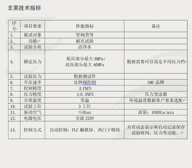 微機(jī)控制電液伺服動(dòng)靜萬能試驗(yàn)機(jī)主要技術(shù)參數(shù)和設(shè)備配置