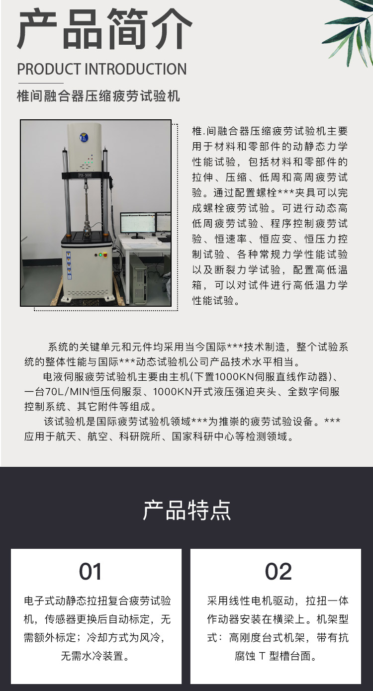 人造膝關節疲勞試驗機椎間融合器脊柱固定器拉伸壓縮彎曲扭轉測試