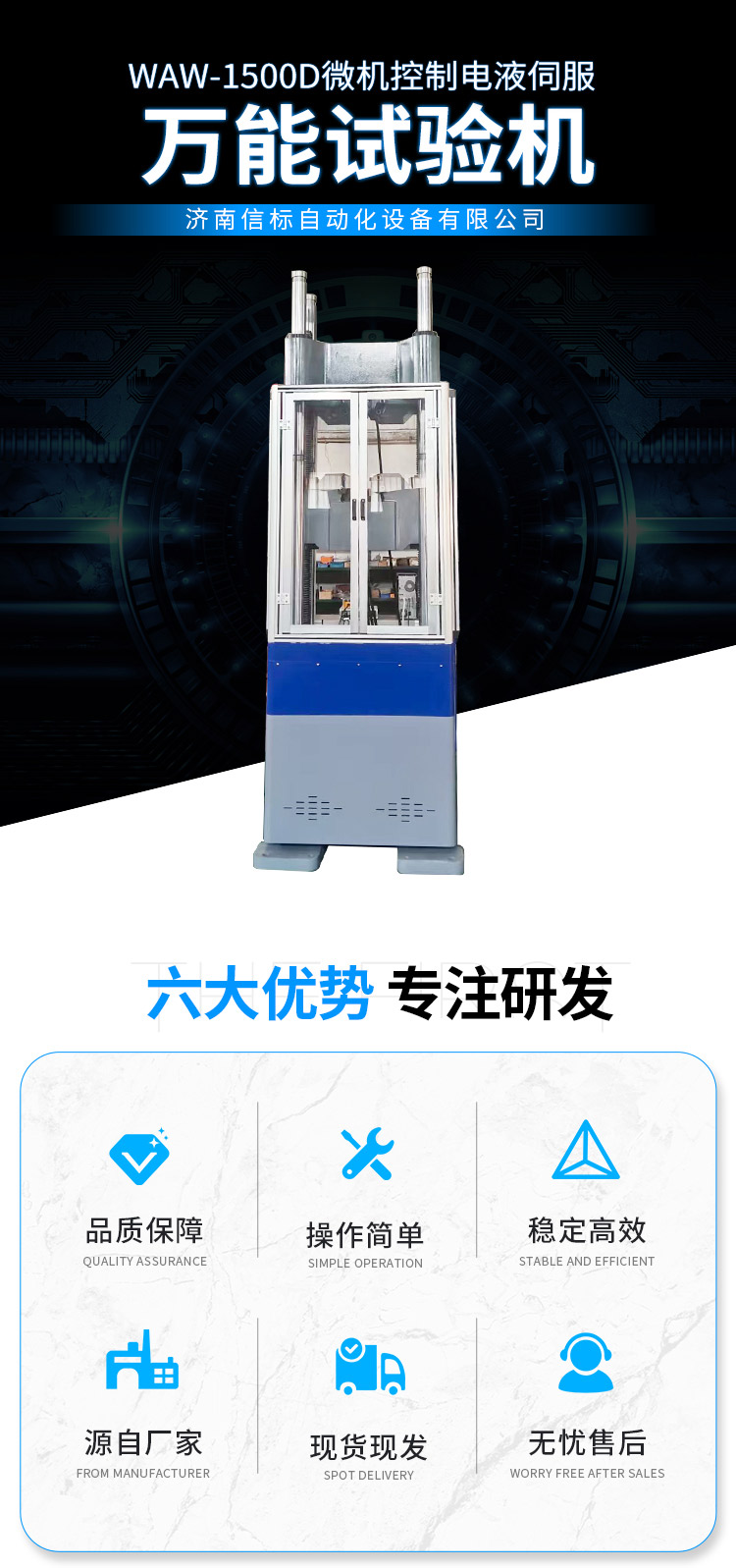 濟南信標自動化設備有限公司主要生產:動靜態萬能疲勞試驗機,接骨板彎曲試驗機,縫合線拉伸疲勞試驗機,髖膝關節磨損試驗機,電子萬能試驗機、液壓萬能試驗機、巖石三軸、四軸,電液拉力試驗機,材料試驗機,高低溫蠕變,高低頻疲勞,拉伸、扭轉、杯突等二十多個系列兩千多個的品種。