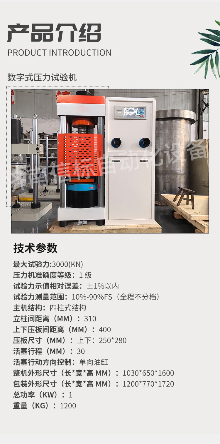 數字式壓力試驗機(立柱式,電動絲杠調整試驗空間)