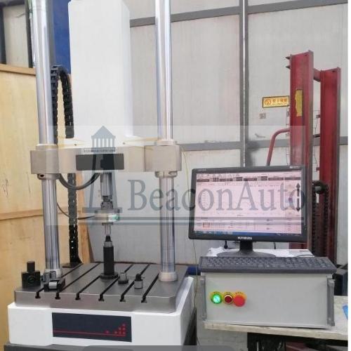主機為雙立柱框架式結構, 伺服直線作動器下置于主機框架上部。夾頭分別安裝在橫梁和作動器活塞桿頂端。主機橫梁調整采用電動絲杠升降,傳動單元隱藏在橫梁內部,外觀整潔,主機下部工作臺為分體式,不需要刻意拆掉,整機防止在客戶Z定的臺面上。手動夾緊、彈性松開式結構,保證試驗過程中橫梁穩固可靠,同時保證在非試驗狀態時橫梁保持鎖止不動。立柱外表面采用電鍍硬鉻處理,可有效增加立柱抗磨損能力,提高防腐蝕能力,同時增加主機外形的美觀程度。